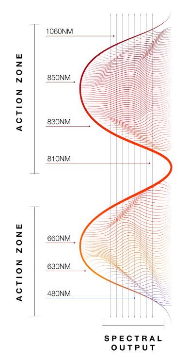 Optimized, proprietary 7-wave R+|NIR+ spectrum.